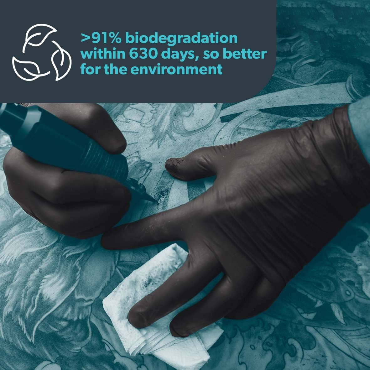 Черни, биоразградими, нитрилни ръкавици за медицински преглед със средно тегло