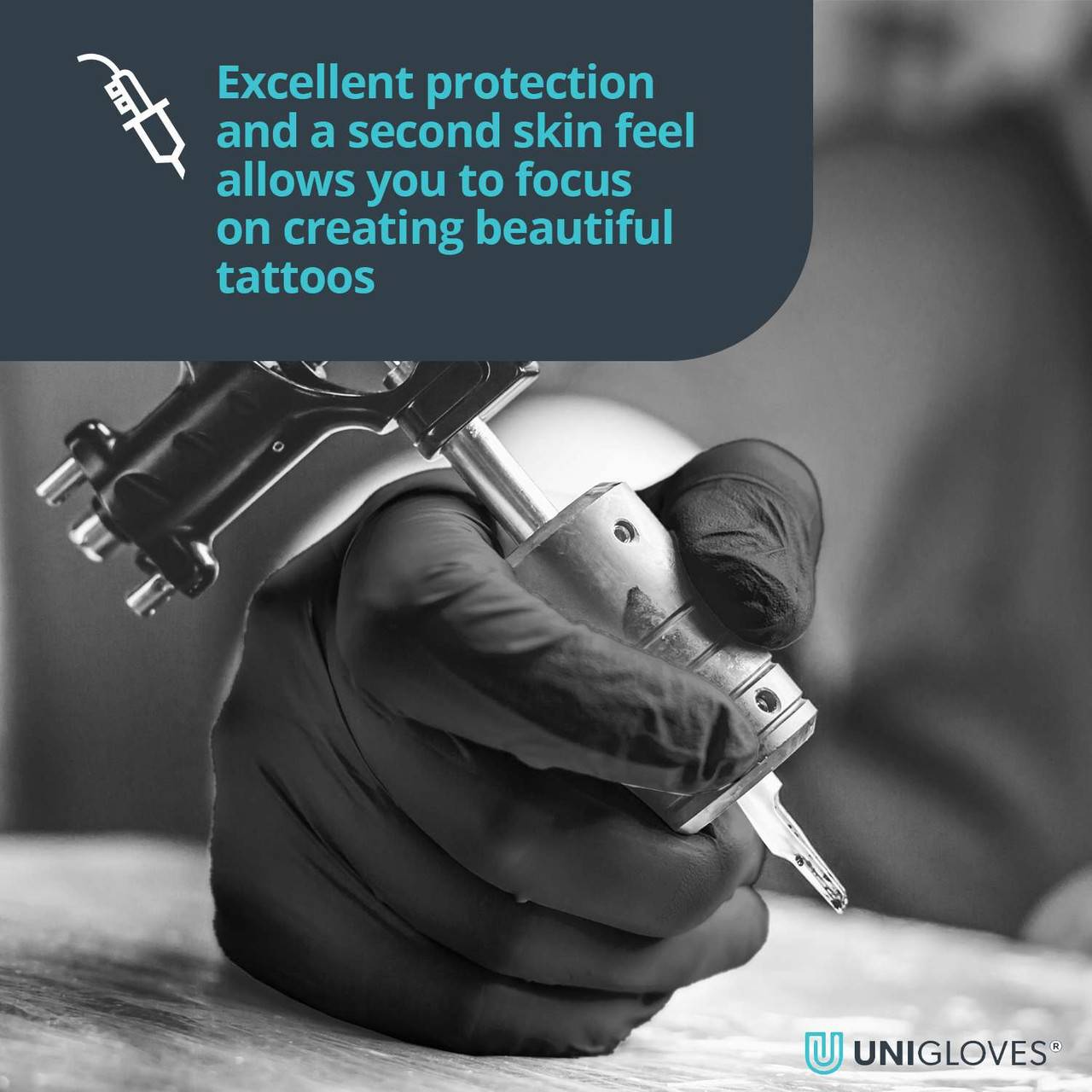 - Създаден за татуисти и работа в индустрията за красота, предлагащ оптимална защита с матово черно покритие, което маскира кръвта и мастилото и намалява напрежението на ръцете и очите при работа върху сложни задачи